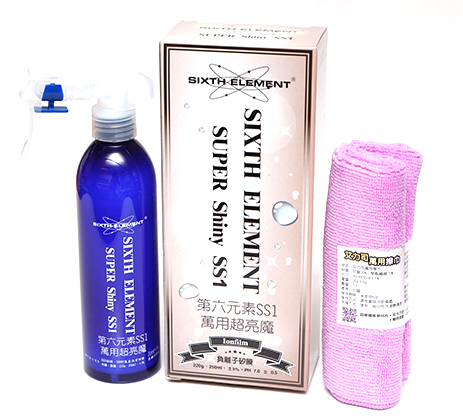Sixth Element Super Shiny SS1 Ionfilm is great for glass, metal, leather and wooden furniture. Certified by SGS RoHS; Neutral pH7.0, gentle to the skin. Guaranteed NT 50 million dollars liability insurance. Easy to use revolutionary product that cleans, films and polishes all at once.